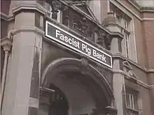 Jerzei Balowski arrives to check on the house and its belongings, but on discovering several destroyed items, including the television, Jerzei evicts them all onto the street. The next morning, the four are seen living on the streets as John Otway performs his song "Body Talk", provoking Vyvyan to comment: "I'll bloody well make his body talk in a minute!". The four later receive their exam results from the postman, who has already read the letters and tells Rick that he "came bottom in the whole world", followed by Vyvyan, Mike, and Neil coming top out of the four. Mike then hatches a plan to rob a bank, using water pistols and Vyvyan's Ford Anglia as a getaway vehicle. They mess up their own robbery, but unwittingly take the proceeds from a separate ongoing one, and escape to Vyvyan's car, which he had parked in front of a lamppost. Vyvyan promptly crashes it into the lamppost. Inconsolable at crashing his car, he also reveals that his hamster SPG has died, as he was sleeping on the car's radiator when the car crashed.