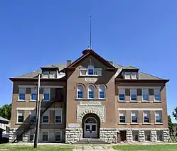 Sumner High School is a historic building located in Sumner, Iowa, United States. Built in 1901, the Neoclassical style building replaced the old 1876 school building. The 2½-story brick structure is built on a raised stone basement and capped with a hip roof and cupola. An addition was built onto the north side of the building in 1915, and the gymnasium was added in 1924. This was Sumner's only school building until 1953 when a new grade school was built.[2] A new high school building was completed in 1961. The local school district continued to use the building until 1988, and the gymnasium continues to be used by the district. The building was listed on the National Register of Historic Places in 2004.[1]