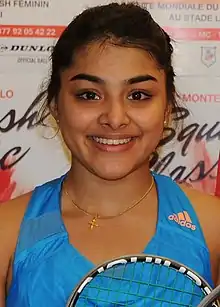 Sunayna Kuruvilla (born 22 May 1999 in Kochi) is an Indian professional squash player.[1] As of February 2018, she was ranked number 89 in the world.[2] She has played in the main draw of numerous professional tournaments. She has won silver medal in women's team event in Asian games 2018.