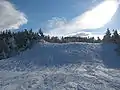 - Aurora Peak: A mix of intermediate and difficult trails serviced by a quad chairlift. There is also a double chairlift (Lift 13) that connects the base of Aurora to the base of Jordan Bowl