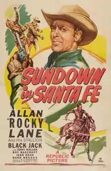 Sundown in Santa Fe is a 1948 American Western film directed by R. G. Springsteen, written by Norman S. Hall, and starring Allan Lane, Eddy Waller, Roy Barcroft, Trevor Bardette, Jean Dean and Russell Simpson. It was released on November 5, 1948 by Republic Pictures.[1][2][3]