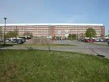 Sundsvall Regional Hospital offers for example emergency hospital care, childbirth and specialist healthcare. There were 383 beds as of 2012, including 65 in psychiatry, and approximately 2,400 employees. Sundsvall Regional Hospital covers 190,000 m2[1] and serves a population of between 130,000 and 150,000.[2] It is cooled down year-round by stored snow, bringing down energy consumption for hospital cooling by 90%.[1][3]