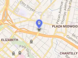 Sunnyside Avenue station is located between Hawthorne Lane Bridge, over Independence Expressway (US 74/NC 27), and Sunnyside Avenue, in Elizabeth. The immediate area is a mix of single-family homes and multifamily residential buildings. The Plaza-Midwood commercial district is northeast of the station and is known for its eclectic mix of storefronts, bars, restaurants, and residential streets.[2]