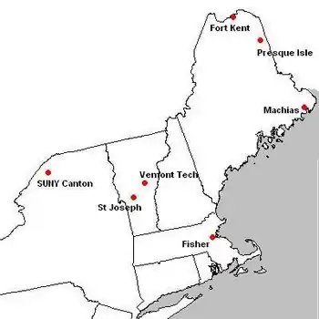 The conference disbanded in 2011 when the College of St. Joseph, Vermont Technical College and University of Maine at Machias left the conference and the NAIA for the United States Collegiate Athletic Association (USCAA) and the Yankee Small College Conference (YSCC).[3][4] The University of Maine at Fort Kent, University of Maine at Presque Isle, and SUNY Canton then left with no regional NAIA competition to become independents in the USCAA.[4]