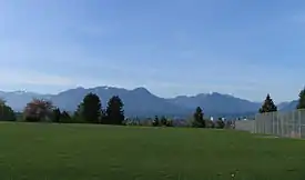 Sunrise Park offers panoramic views towards the North Shore Mountains, Burnaby Mountain, and Mount Baker, an active volcano in Washington State.