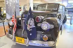 The Sunshine Special was the official state car used by Franklin D. Roosevelt, the 32nd president of the United States. It is said to have been the "First Presidential car to acquire its own personality".[1] It was a 1939 twelve-cylinder engine, four-door convertible originally built by Lincoln and was specifically modified for the president by a speciality coach builder, Brunn & Company, Inc., in Buffalo, New York, at a cost of $4,950 ($96,430 in 2021 dollars [2]) (the original cost of the car was $8,348.74 ($162,646 in 2021 dollars [2])).[3] Initially called "Old 99," in reference to a number on its first license plate, it was later nicknamed the "Sunshine Special" (the exact origin of the nickname is unknown, but it was most likely first used in a photo caption)[4] as a reference to its retractable roof, and was famously enjoyed by the president, who had its roof brought down during public gatherings. At other times, the car was used as traditional presidential transportation. This was in spite of a previous assassination attempt on Roosevelt as he was riding in a Buick convertible, prior to the creation of the Sunshine Special.