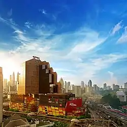 In March 2011, Putra Place, which consists of The Mall, Legend Hotel (now known as Sunway Putra Hotel) and an office block, was acquired by Sunway REIT under Sunway Group for RM513.94 million in a public auction and they spent RM307 million in refurbishment costs.[9] The refurbishment started in May 2013 and reopened as "Sunway Putra Mall" on 28 May 2015.[10][11] Sunway Putra Mall repositioned itself as an urban-chic lifestyle mall and houses 300 outlets.[12]