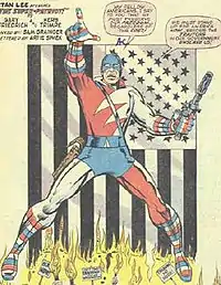 Super-Patriot is a name used by three fictional characters in the universe of Marvel Comics. The first was an enemy of Nick Fury and S.H.I.E.L.D. The second was John Walker, who used the name Super-Patriot as a rival to Captain America.[1] When Steve Rogers gave up the role of Captain America, Walker was tapped by the Commission on Superhuman Activities to replace Rogers; Walker later adopted the moniker U.S. Agent after Rogers' return. The third person to use the alias was Mike Farrell, a former neighbor of Steve Rogers, who became Super-Patriot and allied himself with Dead Ringer.[2][3]