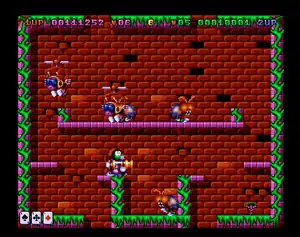 Super Methane Brothers is a video game similar to Taito's Bubble Bobble arcade game, released for Amiga in 1993 by Apache Software.[2] Despite its striking similarities to Bubble Bobble, the game was originally inspired by Namco's Tumblepop. [3]