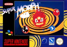Super Morph is a 1993 Super Nintendo Entertainment System puzzle video game released by Millennium Interactive. The game's plot is of a child who is given a temporary ability to change between states of solid, liquid, or gas coming in the forms of a cannonball, a rubber ball, a water droplet, and a cloud. The player must go through over 36 challenging levels set in four different zones collecting special cogs from each level in order to fix a machine capable of turning him back into a normal boy.