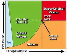 - Subcritical – up to 705 °F (374 °C) and 3,208 psi (221.2 bar) (the critical point of water)
