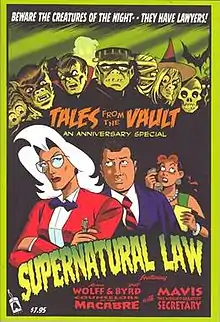 Supernatural Law, previously known as Wolff and Byrd, Counselors of the Macabre, is a comic strip, comic book and web comic series written and illustrated by Batton Lash. The series features the law practice of Alanna Wolff and Jeff Byrd, who specialize in serving the legal needs of monsters and other supernatural beings,[1] or those who find themselves in conflict with such beings. Wolff and Byrd themselves are human, as is their secretary Mavis. The series tagline is "Beware the creatures of the night — they have lawyers!"