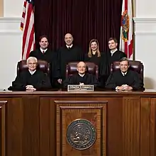 The Supreme Court of Florida is the highest court in the U.S. state of Florida. It consists of seven members: the chief justice and six justices. Five members are chosen from five districts around the state to foster geographic diversity, and two are selected at large.
