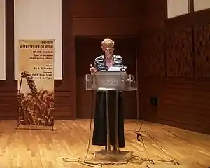 ![]() Suraiya Faroqhi speaking at the Ahmet Adnan Saygun Arts Center in 2017 | |