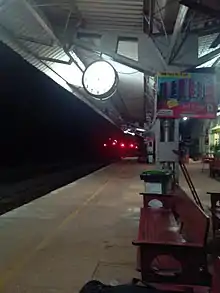 Surathkal railway station is one of the main railway stations of Mangalore city along with Mangalore Central railway station and Mangalore Junction railway station and is located in north Mangaluru. Twenty-two trains stop here.KRCL operates RO-RO services from Suratkal to Verna, Kolad, and Karembeli.[1][2] As per the Konkan railway map, Surathkal railway station is at a distance of 733.825 kilometers from the northern starting point of the Konkan railway line at Roha and 4.615 kilometers from Thokur which is the southern endpoint of Konkan railway jurisdiction.[3] The Surathkal railway station is at distance of 26.285 Kilometre from Mangaluru Central(MAQ) railway station.[4]