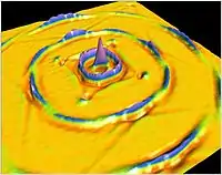 A surface acoustic wave (SAW) is an acoustic wave traveling along the surface of a material exhibiting elasticity, with an amplitude that typically decays exponentially with depth into the material, such that they are confined to a depth of about one wavelength.[2][3]