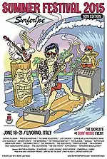 The Surfer Joe Summer Festival is an annual music event currently held in Livorno, Italy, dedicated to surf music and organised by Surfer Joe Music. Due to the popularity gained throughout the years within the surf music scene and the international attendance, the organization titled it "The World's Number 1 Surf Music Event".[1] It usually features surf bands from all over the world that have recently been under the spotlight of the surf music community, legends of the genre or even relatively new bands looking for popularity. It does not only features concerts but also symposiums, cultural happenings, artists meet & greets, exhibitions and other activities related to the music genre or reminding to the "California 60s style". It has also been connected to surfing, surf brands and lately it has got closer to the tiki scene.