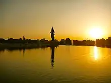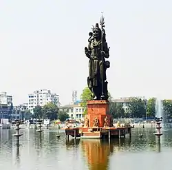 Sursagar Lake also known as the Chand Talao is a lake situated in middle of the city of Vadodara in the State of Gujarat in India. The lake was rebuilt with stone masonry in the 18th Century. The water in this lake remains in it for the whole year. A concrete wall surrounds the lake on which the people use to sit. A 120 feet (37 m) tall statue of lord Shiva built by Vadodara mahanagar Seva Sadan stands in the middle of the lake. There are many underwater gates in the lake which empty the lake if it overflows. The water from the lake empties in the Vishvamitra River. The lake was used for boating. The statue of Shiva is lit with lights on Mahashivratri.