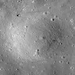 ![]() LRO Narrow Angle Camera image. The Apollo 12 Lunar Module Intrepid is in upper left, the Surveyor 3 lander is on the right side of the crater, and astronaut tracks are visible as dark lines. | |