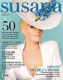 Susana was an Argentinian magazine for women directed by Susana Giménez, a big celebrity in Argentine television.[4][5] Inspired by other international figures' publications, such as O, The Oprah Magazine by Oprah Winfrey and AR by Ana Rosa Quintana,[6] the magazine was named after her, and she appeared on every cover. It was first published in 2008 and included articles on women's issues, relationships, sex, health, careers, self-improvement and celebrities, as well as fashion and beauty. Many of the articles were about Giménez herself.[3] The last issue was published in May 2018.