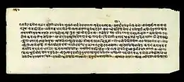 Sushruta (Devanagari सुश्रुत, an adjective meaning "renowned"[18]) is named in the text as the author, who is presented in later manuscripts and printed editions a narrating the teaching of his guru, Divodāsa.[19][20] A person of this name is said in early texts such as the Buddhist Jatakas to have been a physician who taught in a school in Kashi (Varanasi) in parallel to another medical school in Taxila (on Jhelum river),[21][22] sometime between 1200 BCE and 600 BCE.[23][24] The earliest known mentions of the name Sushruta firmly associated with the tradition of the Suśrutasaṃhitā is in the Bower Manuscript (4th or 5th century CE), where Sushruta is listed as one of the ten sages residing in the Himalayas.[25]