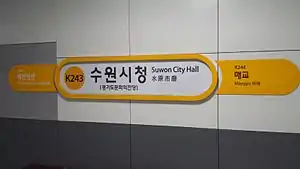 | Wikimedia Commons has media related to Suwon City Hall Station. |