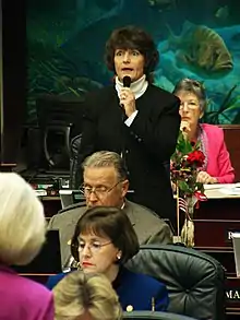 Chiles repeatedly visited the district to campaign for Kosmas,[11] arguing that Ascherl left large shoes to fill and that she had the leadership credentials to replace him.[12] Kosmas was also endorsed by the Orlando Sentinel, which argued that she had "a much sharper understanding of issues" than Cooper and that her "extensive hands-on community-service experience" was better-suited than his,[13] and by the Daytona Beach News-Journal, which concluded that she was "extraordinarily well-versed on key issues" and was "much more in touch than Cooper with the needs of the community."[14] The News-Journal also criticized the attack ads that Cooper ran against Kosmas—which called her "Volusia County's Biggest Fraud" and accused her of being a "tax cheat" and a "business fraud"—as "the nastiest and most deceptive ads" in that year's elections.[15] Ultimately, Kosmas ended up narrowly defeating Cooper, winning her first term in the legislature 52–48%, by a little more than 2,000 votes.[16]