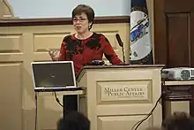 Mettler co-edited the Oxford Handbook of American Political Development (2016). Mettler subscribes to the subfield of political science called American political development (APD), which recognizes the need for an analytic approach to researching and understanding U.S. politics. She feels there is a distinctiveness of the APD approach,[2] which studies "the causes, nature, and consequences of key transformative periods and central patterns in American political history,"[3] as well the "durable shifts in governing authority" in the United States.[4] Mettler has been described as a prominent Americanist scholar in this relatively new field, which blurs the border between political science and political history.[5] Her particular interests include inequality, democratization and civic engagement.[6] She has written five books, most prominently two winners of the Kammerer Award[7] of the American Political Science Association for the best book on U.S. national policy: Soldiers to Citizens: The G.I. Bill and the Making of the Greatest Generation, 2005 (Oxford University Press), and Dividing Citizens: Gender and Federalism in New Deal Public Policy, 1998 (Cornell University Press), which also won the Greenstone Book Prize[8] and the Martha Dertick Book Award.[9] Other books include The Government-Citizen Disconnect (Russell Sage 2018); Degrees of Inequality: How The Politics of Higher Education Sabotaged the American Dream (Basic Books 2014); and, The Submerged State: How Invisible Government Programs Undermine American Democracy (University of Chicago 2011). Mettler has written for a broader audience with publications in New York Times, L.A. Times, Foreign Affairs, and Salon. The election of Trump heightened Mettler's concerns about the future of American democracy.[10] In 2017, Mettler initiated the American Democracy Collaborative, a group of political scientists "who are evaluating the health of democracy in the United States".[11]