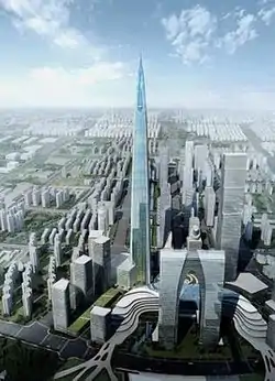 The original building's design called for a height of 729 metres (2,391.7 ft) with a total of 137 floors. The tower was proposed in 2011 and began construction in 2014 but was halted a year later. In 2019, the tower was cancelled and replaced with a 499 meter tower. The original tower would’ve been the second tallest building in the world if it were actually completed.