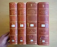 The Svenskt konstnärslexikon is a dictionary of Swedish art and artists that was published in five volumes by Allhems Förlag AB from 1952 to 1967.[1] The dictionary includes over 12,000 biographical entries for Swedish artists with detailed bibliographies for each entry.[2] The editors were Gösta Lilja, Bror Olsson, Knut Andersson and S. Artur Svensson, with additional contributions by Johnny Roosval, Ragnar Josephson and Karl Erik Steneberg.