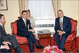 On 10 September 2003, during Croatian president Stjepan Mesić's state visit to Belgrade, Marović delivered a public apology for "all evils done by any citizen of Montenegro and Serbia to anyone in Croatia".[10] Mesić followed suit, delivering a counter-apology to "anyone whom citizens of Croatia caused any pain or damage, anytime, anyplace."[10]