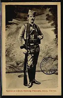 Svetozar Ranković-Toza (Serbian: Светозар Ранковић; 1880 – November or December 1914) was Serbian Chetnik soldier and voivode during the struggle for Macedonia, the Balkan Wars and World War I.[1] He was one of the key Chetnik commanders in the fight to liberate the Balkan Peninsula from Ottoman and Habsburg occupation.[2][3][4]