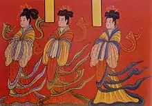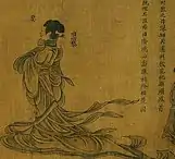 Swallow-tailed Hems and Flying Ribbons clothing, also known as zaju chuishao fu (traditional Chinese: 雜裾垂髾服; simplified Chinese: 杂裾垂髾服; pinyin: zájū chuíshāo fú; Wade–Giles: tsa2-chü1 chʻui2-shao1 fu2; Zhuyin Fuhao: ㄗㄚˊ ㄐㄩ ㄔㄨㄟˊ ㄕㄠ ㄈㄨˊ) and Guiyi (袿衣) in Chinese[1] and sometimes referred as "swallow tail" clothing for short in English,[2][3] is a type of hanfu for Chinese women which was popular during the Han,[4] Cao Wei, Jin and Northern and Southern dynasties.[5] It was a common form of aristocratic costumes in the Han and Wei dynasties;[4] it was also a form of formal clothing for elite women.[3]