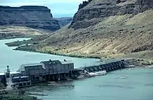The dam was built in 1901 to generate electricity. It is the oldest hydroelectric dam on the Snake River. In the 1990s the original power plant was replaced with a new one.[1] The dam was built with fish passage facilities, but they proved to be very poor in performance. For this reason, among others, the C. J. Strike Dam, built upriver from Swan Falls Dam in the early 1950s, was not equipped with fish passage facilities. Thus the two dams combined to become the first artificial barrier to anadromous fish migration up the Snake River. Today Hells Canyon Dam is the first total barrier to fish migration on the Snake.[4]