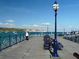 Swanage Pier is a Victorian pier which extends into the southern end of Swanage Bay near the town of Swanage, in the south-east of Dorset. It was built in 1895 for passenger ship services.[2] It is situated on the eastern coast of the Isle of Purbeck, approximately 6+1⁄4 miles (10.1 km) south of Poole and 25 miles (40 km) east of Dorchester in the United Kingdom.