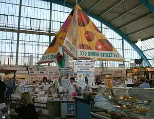Swansea Market situated in the heart of Swansea city centre is the largest indoor market in Wales.[1] The market is covered by a steel arched portal frame roof clad in steel and glass. The current market was built in 1959-1960 by Percy Thomas. Adjoining the market is the Quadrant Shopping Centre.