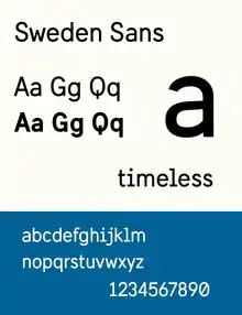 Sweden Sans is a sans-serif typeface developed by Söderhavet design agency[1] for exclusive use by Swedish government ministries, agencies and corporations.[2][3]