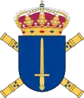 From 1994 to 2001, the Swedish Armed Forces Headquarters had the lesser coat of arms with a sword in gold as an heraldic arm. Blazon: "Azure, the lesser coat of arms of Sweden, three open crowns or placed two and one. The shield surmounting an erect sword of the last colour". This coat of arms was used by the Supreme Commander from 1991 to 1993 and is currently used by the Swedish Armed Forces since 1993. In 2001, the headquarters adopted a new coat of arms. Blazon: "Azure, an erect sword or. The shield surmounting two batons in saltire of the last colour, the batons charged with open crowns azure placed two and one."[19]