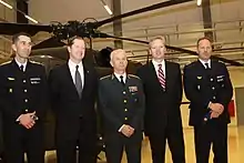 The unit was formed on 1 January 1998. The Air Force, Army and Navy no longer had their own helicopters but were part of the Swedish Armed Forces Helicopter Wing as an asset for all service branches. Sweden was the first in the world to introduce this type of organisation.[4] From the beginning, the unit was directly subordinate to the Supreme Commander of the Swedish Armed Forces and the Swedish Armed Forces Headquarters.[5] The inauguration, which was performed by Vice Admiral Peter Nordbeck, took place on 3 February 1998 outside Linköping.[4][6] This nationwide wing, which is led from Malmen Airbase (the district of Malmslätt in Lindköping) would from 1 January 1999 have four battalions:[5][6]