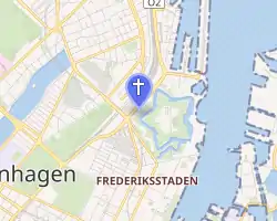 As had been the case with St. Alban's English Church two decades earlier, a site was provided by the Danish state on the bank of the moat surrounding Kastellet, although on the opposite, north-western, corner, on the site of the former Grønlands Bastion.