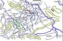 Settling for not taking Rostock at the present, the king determined that he must take the Tollense river before progressing. However, before doing this he decided to definitively settle the Kolberg question, and instead of observing the place to take it, so he could communicate completely with Oxenstierna. Horn, the general who had been allocated to command the Kolberg region and see about the taking of Kolberg itself, was informed of an Imperial plan to march to Kolberg from Garz and relieve the place.[65] Horn assembled all of the forces that he could, leaving a small force to observe Kolberg, and marched towards Rossentin,[71] immediately to the south of Kolberg[71] to await the arrival of the Imperial army from Garz.[71] The Imperials made a huge circuit, hoping to avoid detection marched via an elaborate circuit to the south.