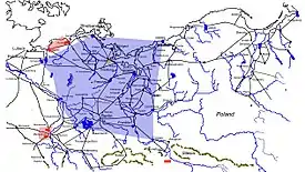 The king did not only desire to tighten his grip in the area he had landed in, but he also wanted to join hands with Oxenstierna. Oxenstierna had a large force on hand in Prussia which the king wanted to bring into the conflict in Germany (Prussia, being a part of Poland at the time). The king order Oxenstierna to order an "able officer" to Stolpe, but establishing a connection with Prussia and Oxenstierna would have to wait. Despite his good position, being in between the Imperials as he was, his army was spread out in three separate bodies that could not support each other except by sea; under the king was the force stationed at Oderberg and Stettin; Kagg's force was based on Usedom (a sort of "link in the chain"[58]); and Knyphausen's force that was based on Stralsund.[58] It was critical that before he advance into the interior, or that Oxenstierna should join him, he should be able to act in concert with all of these bodies and move them about at will so they could support each other without encountering the enemy en route. One of the features that makes him the first "modern general" is his scrupulous care for his communications and his operating under the principle that his army should be united, or each unit having the ability to join the other units, at any time. Holding Anklam was not enough to ensure that the body based on Stralsund could quickly join his army at Oderburg should matters become problematical. The line from Stralsund to Anklam down to Stettin could be punctured at any point. The river Tollense (immediately west of Anklam) ran roughly parallel to this irregular line that he had garrisoned. To hold his gains on the coast secure, he must have this river as to prevent the Imperials-based out of Mecklenburg[58] from cutting his line. To change this situation, the king ordered Knyphausen to move his army forward in a southwesterly direction towards the Tollense,[58] and Kagg was to follow Knyphausen's movement and simultaneously ensure that Knyphausen's force was not attacked on its northern flank. As the line was spread out as it was, with a somewhat weighted right flank, it would ensure that the Imperials could not support each other, as the original units would be forced to hold their position or risk losing their positions in their attempt to save another fortified place.[58]