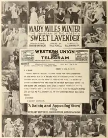 Sweet Lavender is a 1920 American silent drama film directed by Paul Powell and starring Mary Miles Minter. The scenario was adapted by Beulah Marie Dix from the 1888 play of the same name by Arthur Wing Pinero.[1] Like many of Minter's features, it is thought to be a lost film.[2]