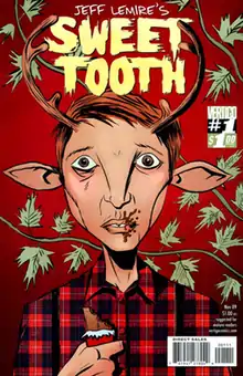Sweet Tooth is an American comic book limited series written and drawn by Canadian Jeff Lemire and published by DC Comics' Vertigo imprint. Dubbed by some as "Mad Max meets Bambi",[1] it takes place in a mostly rural post-apocalyptic setting where some creatures are human/animal hybrids. Following the conclusion of the original series in January 2013, a sequel, subtitled The Return, began publication in November 2020, while a television series adaptation was released on Netflix on June 4, 2021.