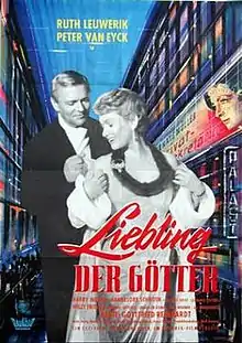 Sweetheart of the Gods (German: Liebling der Götter) is a 1960 West German biographical film directed by Gottfried Reinhardt and starring Ruth Leuwerik, Peter van Eyck, and Harry Meyen. The film portrays the life of Renate Müller, a German film actress who died in 1937 in mysterious circumstances. A variety of rumours about Müller's death had developed, but the filmmakers chose to portray it as suicide following Nazi pressure over her relationship with a Jewish diplomat. Following legal objections from Müller's family, the ending was toned down to make her final fate more vague.[1]