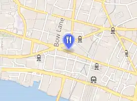 Sweetings's first incarnation was as John S. Sweetings, Fish and Oyster Merchant in Lad Lane, Islington, in 1830. The Lad Lane shop continued to supply fish and game to hotels and restaurants The restaurant later occupied sites at 159 Cheapside and 17 Milk Street, advertised as "Very Superior Oyster Rooms".[1][2] Fodor's wrote that "little seems to have changed at this time warp since the height of the British Empire".[3] The French painter Henri de Toulouse-Lautrec patronised Sweetings in the 19th century.[1] Sweetings has been owned by Richard Barfoot since 2001 who bought it from the widow of Graham Needham. Needham had owned it since 1980. Barfoot also supplies Sweeting's sustainably sourced seafood. According to Barfoot, Needham told him that the gangster George Francis once offered him £1,000,000 from a suitcase for Sweetings but Needham said, "I don't want to know and if you are going to trouble me like that you can get out now".[1] Sweetings is located in the Grade II listed Albert Buildings at 39–53 Queen Victoria Street, built in 1871.[4]
