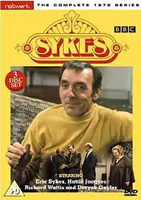 Sykes is a British sitcom that aired on BBC 1 from 1972 to 1979. Starring Eric Sykes and Hattie Jacques, it was written by Sykes, who had previously starred with Jacques in Sykes and a... (1960–1965) and Sykes and a Big, Big Show (1971).[1] Forty-three of the 1970s colour episodes were remakes of scripts for the 1960s black and white series, such as "Bus" based on 'Sykes and a Following' from 1964 and the episode "Stranger" with Peter Sellers based on 'Sykes and a Stranger' from 1961.