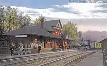 In 1883, the current station building was designed and built by Ephraim Francis Baldwin and was opened in 1884.[3] The station stopped being used for passenger trains in 1950 and the tracks are still used for cargo trains. In 1959, the line was reduced to one track, the far one from the station building. Today, the station house has become a restaurant called the "Sykesville Station Restaurant and Bar" [4]