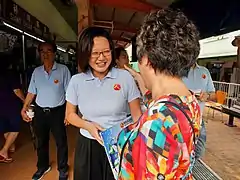 She has been assigned to look after the Serangoon ward previously held by the PAP's Lim Hwee Hua and has also been appointed Chairman of the combined Aljunied–Hougang Town Council. Lim's victory also made her the first female opposition MP in Singapore's post-independence history.[30]