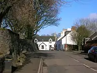 Hugh Glover held the lands of Townend circa 1701-4 and in 1733 William Kelso of Dankeith sold the lands to George Boyd of East Overloan Farm. William Hay Boyd, Esq. of Her Majesty's 20th Regiment of Infantry in the Crimea[26] and was the owner of Townend House (NS 37652 31552) and estate in 1839.[21] Townend is an 18th-century building with a Victorian Italianate wing. A dated lintel in the walled garden may have come from an earlier building on the site; the old stables, were converted into a small dwelling in the 1960s.[27] In recent times Townend Cottage has functioned as a nursing home,[13] Townend Cottage, circa 1810, situated in the village was its former dower house. The Hay-Boyds gave land for the village hall, a school, and a garden next to the church.[26]